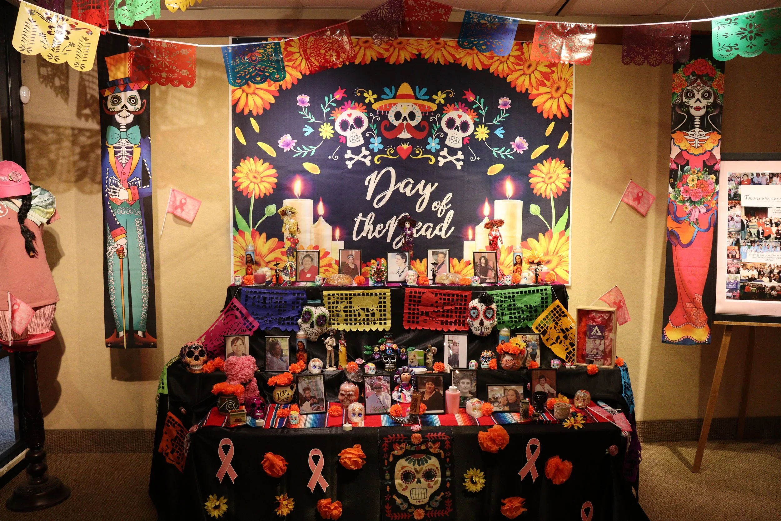 Altars/ofrendas are a beautiful and essential part of the Dia de los Muertos tradition. These altars and art installations are dedicated to remembering and honoring deceased friends and family members, playing a crucial role in the celebration by guiding the spirits back to the land of the living on the Noche de Muertos.