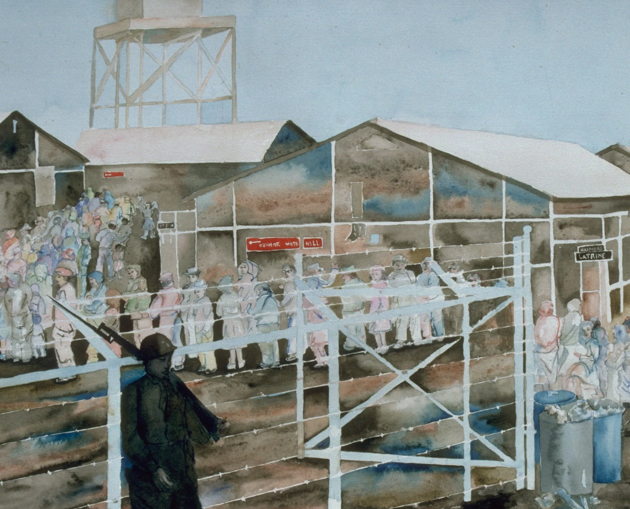Tell Students: Try to imagine how confused and scared Lily felt when at 10 years old, she arrived not at summer camp, but rather at a prison camp surrounded by barbed wire and filled with dozens of dirty tar and paper barracks. She was told that she was one of the lucky ones since others were given old horse stalls (show photo) that smelled of manure and hay to live in. However, Lily was not feeling very lucky.